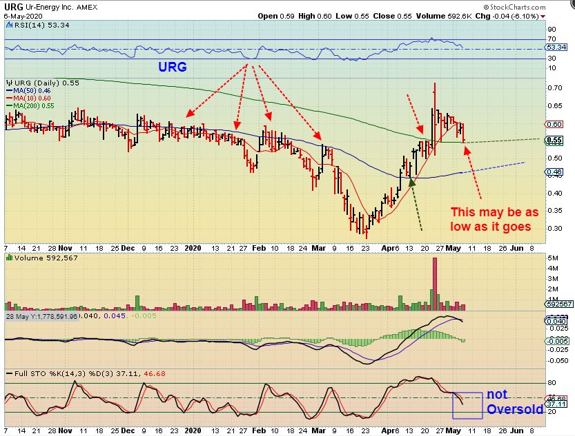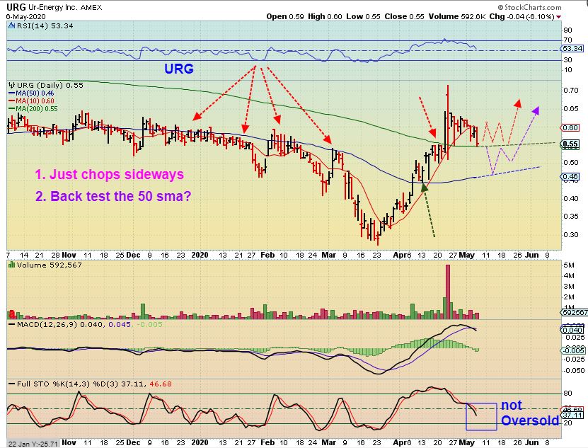 1. I feel that URG could continue to chop along the 200 sma as a bullish consolidation, since it isn’t oversold yet. See the red choppy line.