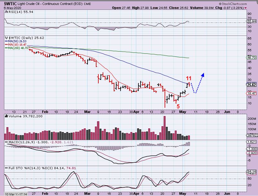 WTIC – Day 11 is early, but Oil has basically tripled off of the lows, so it may pause here at the 50sma.