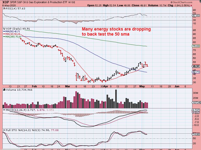XOP – The energy sector is chopping sideways and this may drop & back test that 50sma.