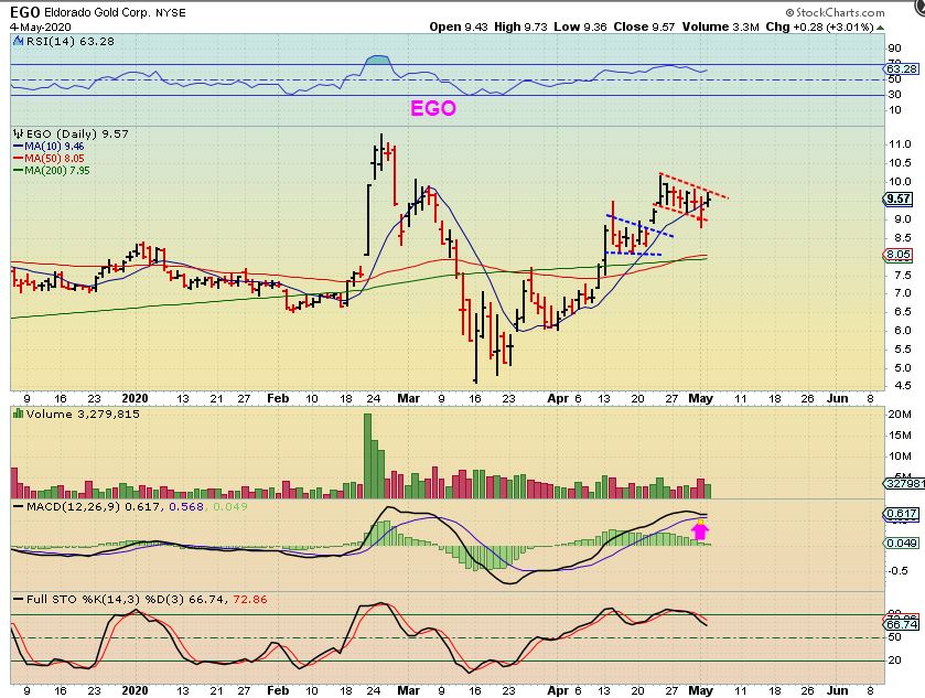 EGO is a bullish set up as it forms another bull flag at the 10sma. I like this set up as a buy.