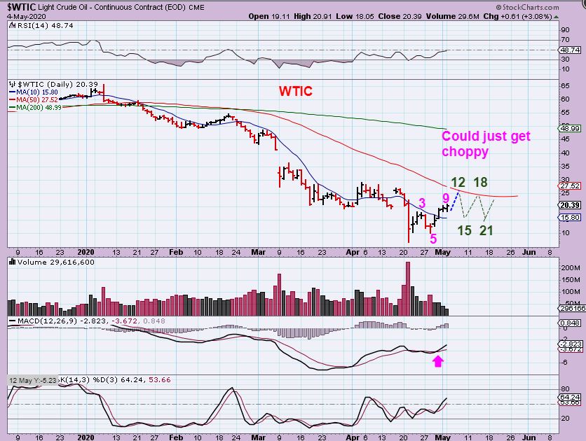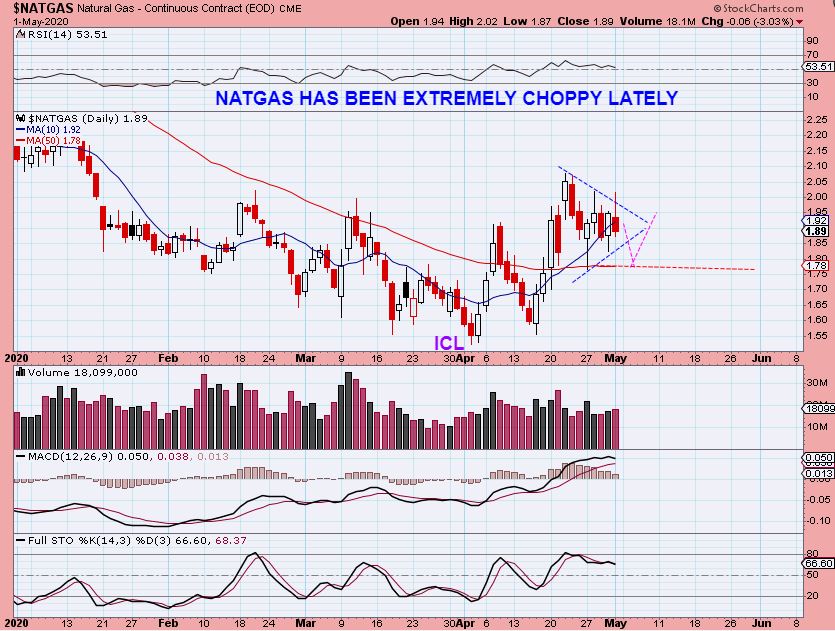 I’m only showing you this NATGAS chart as an example of a choppy bottom. Look at the move from February all the way to Mid April. Oil could do this, and these moves are very hard to trade successfully long or short. HOWEVER…
