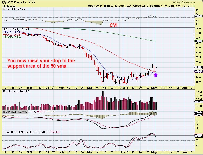 CVI gained 9%, and you can see that many of these Energy stocks from our list are acting exactly the same, dipping to the 50 sma & reversing. I do not own it, but it is excellent looking.