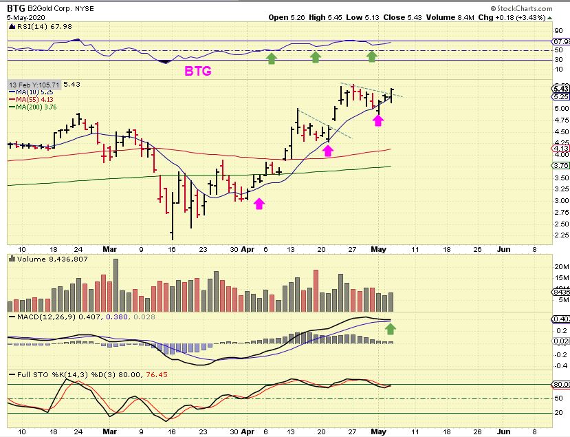 BTG was bullishly breaking higher Tuesday. They released earnings after the bell and were up another 15 cents & mentioned an increase in their dividend. You will find their earnings below this chart