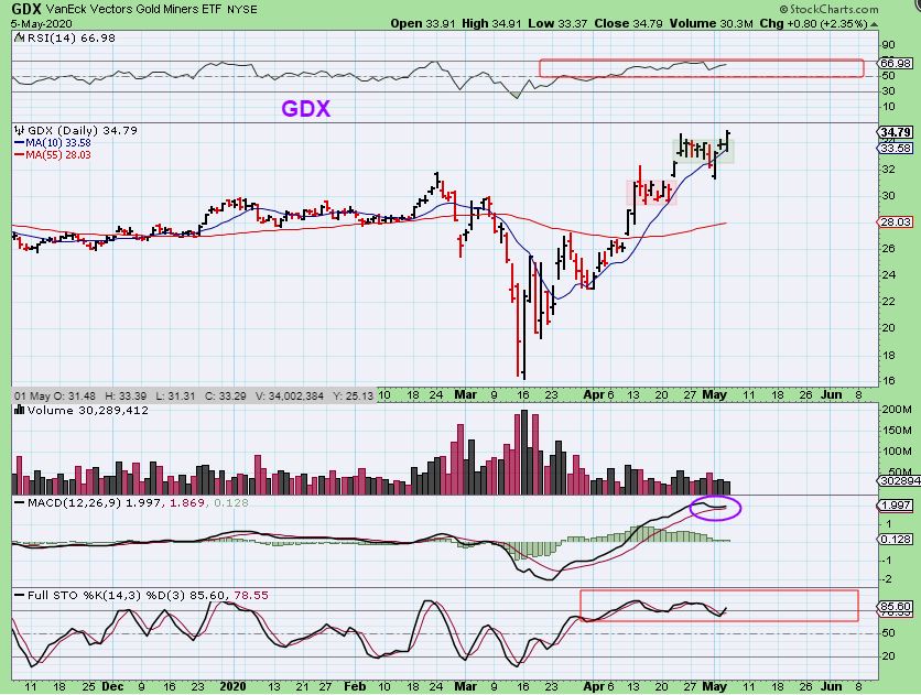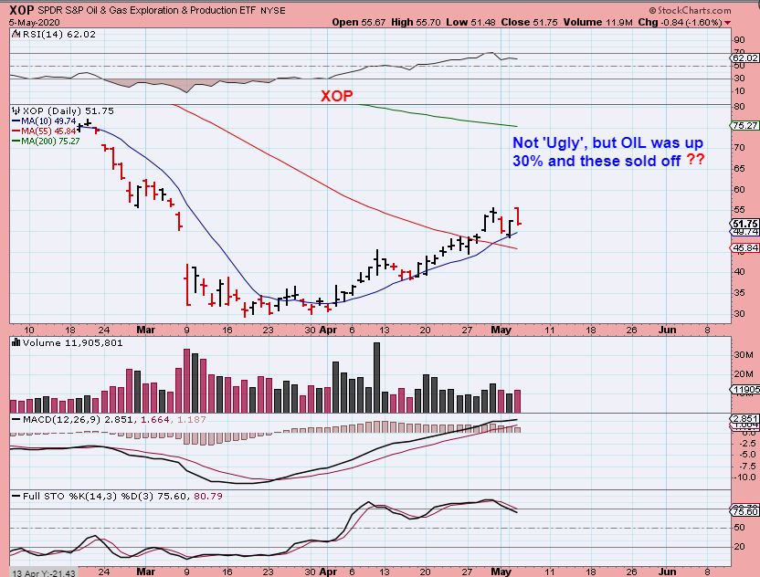 XOP – Oil was up 30% and Energy stocks sold off when the general markets sold off into the close. The charts are still bullishly set up, but THAT price action should be a caution sign that MAYBE these dip when the Markets find their dcl. Dip to the 50sma? We’ll see, it could be an Excellent Buy opportunity too.