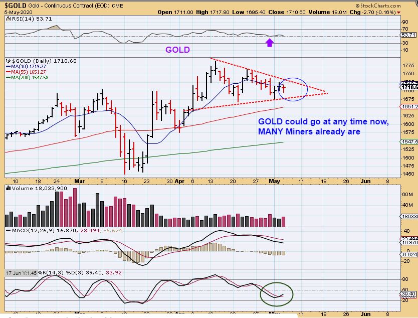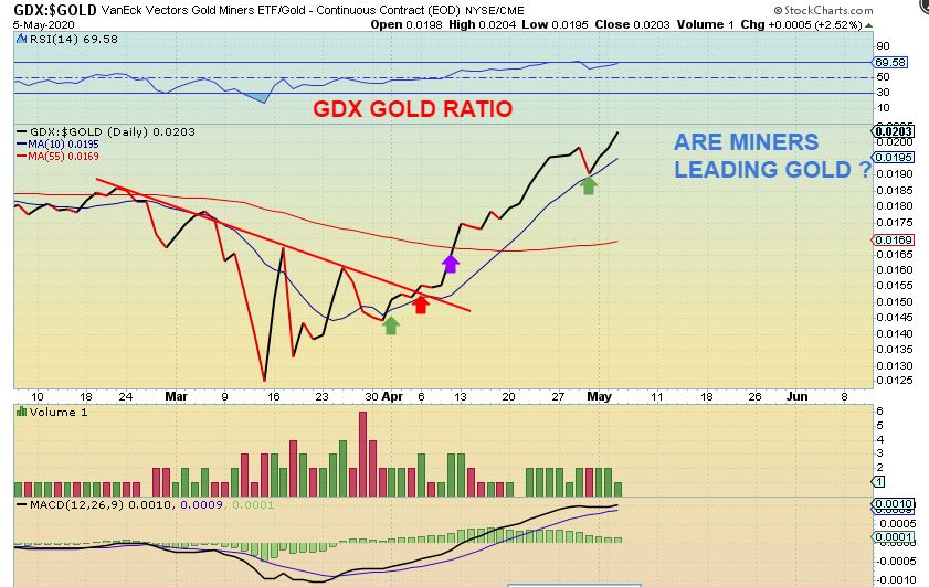GDX / GOLD RATIO – While Gold is forming a triangle and Silver is crawling Under the 50sma, and Miners are leaving people behind. Look at the GDX vs Gold ratio.
