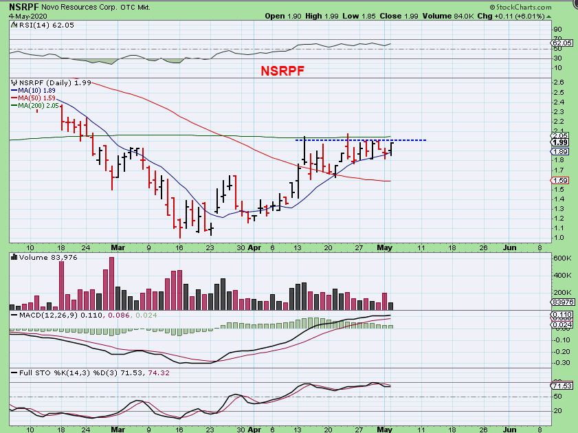 NSRPF – As expected, NSRPF broke out. I did buy it, but it only filled 1/2 of my order as it broke higher. I hope to add again today.