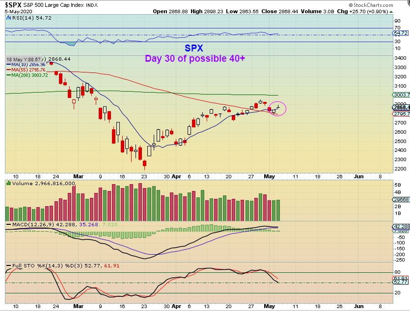 SPX #3 – If this ‘buy the dip’ crowd keeps stepping in, we could have a choppy top and a quick drip to 38% Fib by day 40 or so…