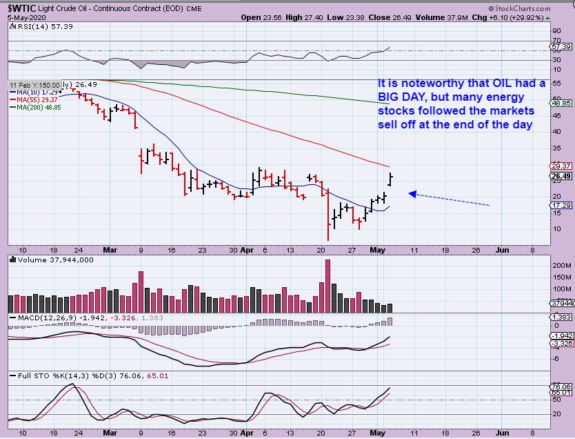 WTIC – oil had a 30% Pop! Oil has now tripled off of the lows, but of course it was a BIG crash down. We were buying Energy stocks as Oil crashed down to the lows, at a time when there was an intense amount of fear. Gains have been rather excellent, however…