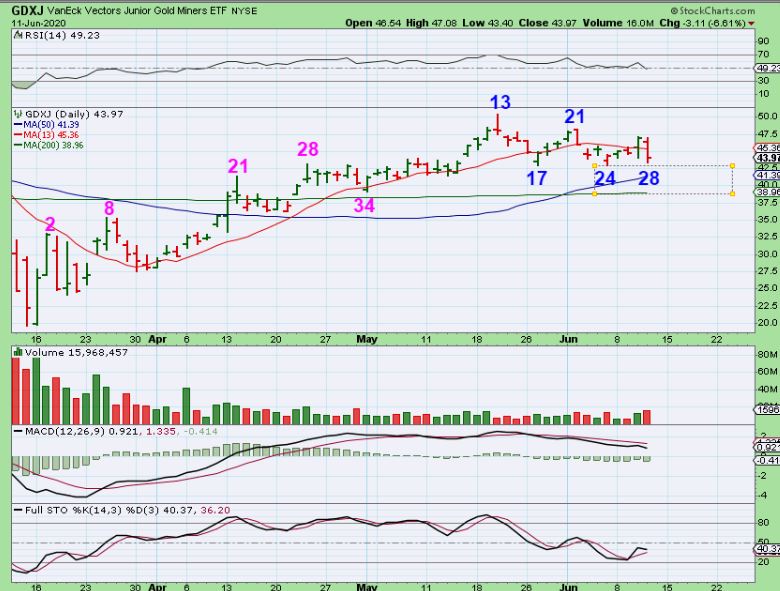 GDXJ on day 28 actually could chop & drop to a day 30+ dcl near the 200sma, and be totally normal. I count the First daily cycle at 34 days, this one is 28.