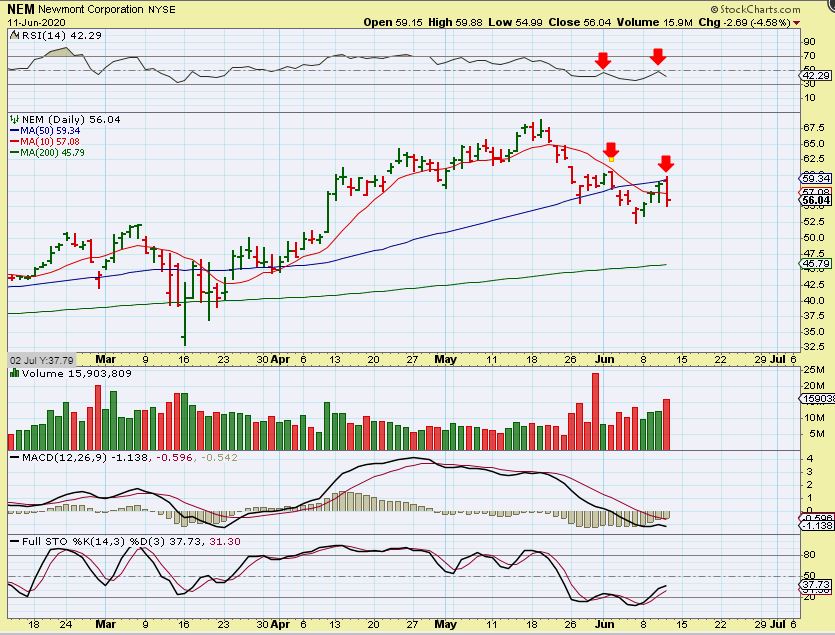 And NEM was rejected at the 50 sma . In technical analysis, this is usually a “loss of the 50sma last week, and a bounce to back test it, and the kiss goodbye”. NEM had high volume on this drop, it looks like it wants to get to the 200 sma. That is Ugly, but it is also a nice low priced entry if you wanted to buy it.