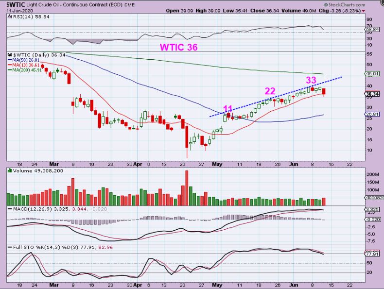 WTIC – Oil is on day 36 and these daily cycles often run 40-50+ days in length. Even if Oil peaked, it should be a Right Translated daily cycle, so the 2nd daily cycle should be good too.