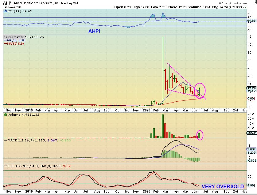 AHPI manufactures and distributes respiratory products and when COVID struck , it rocketed from $2 to $40+. I checked it out, It has done NO reverse splits, that was just a pure run up. Just an amazing rocket ride that has now consolidated for months into a somewhat tighter consolidation. Well…