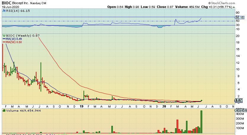 I then mentioned resistance at the $1.oo level, when BIOC hit 97 cents. I sold a good chunk , because it was up 50%, but I want to re-buy. Why? I do think this also has longer term potential…