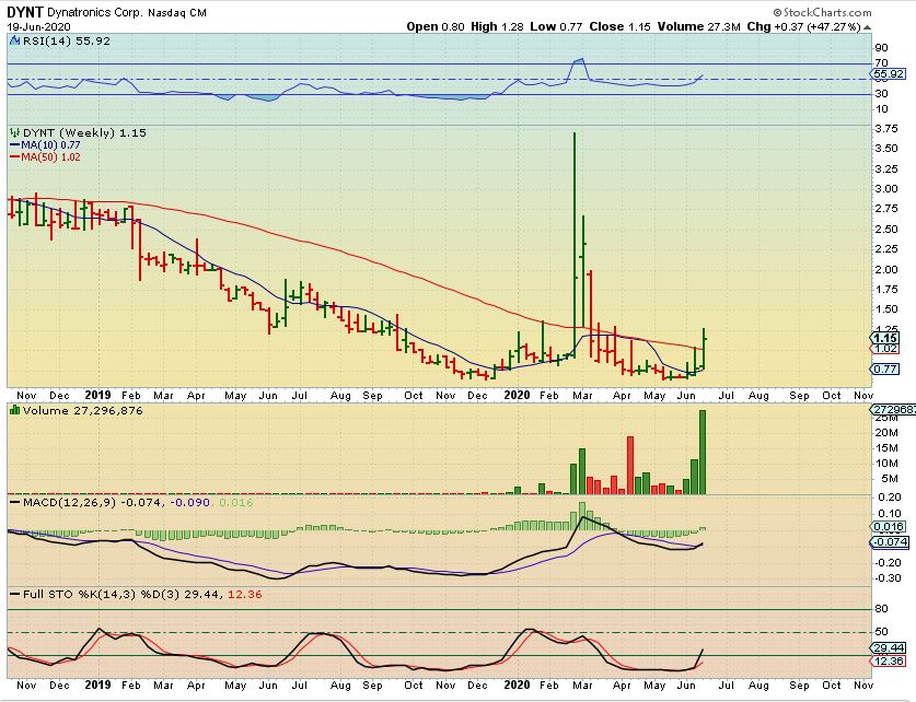 DYNT WEEKLY – Popped 47% this week. DYNT provides medical supplies and devices ( disinfectants too).