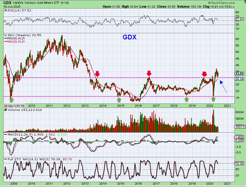 GDX WEEKLY – Back testing resistance to see it act as support.