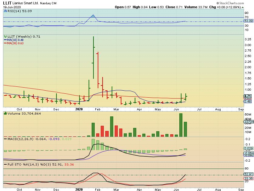 LLIT WEEKLY – This looks extremely Bullish to me, and I own it. Supposedly they did 3 price offerings in February, so I am hoping that that is behind them.