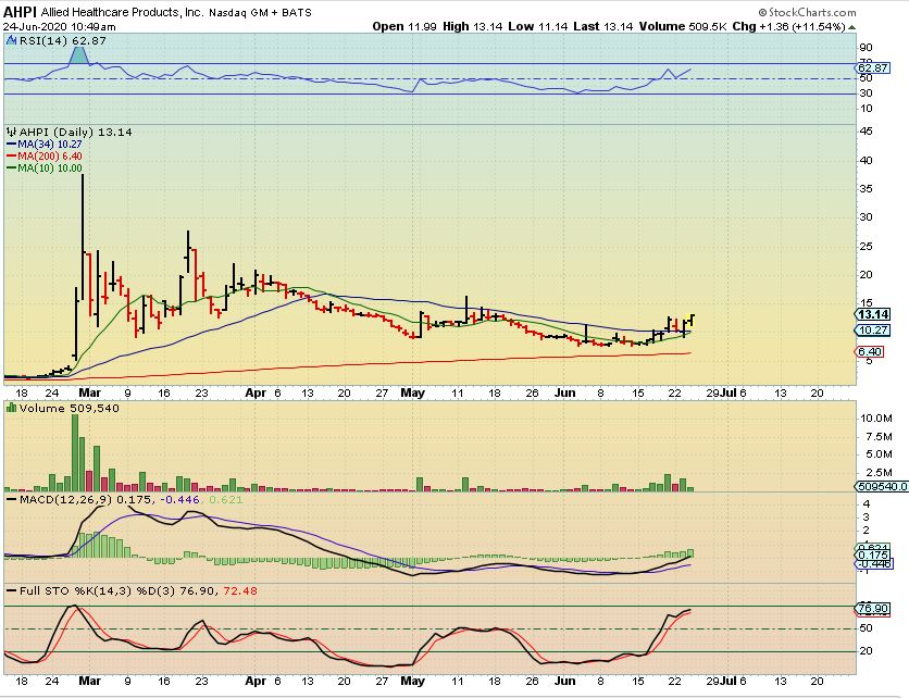APHI is the one that I warned about as choppy and difficult.  They supply respirators.  I own it and it has dropped  $1 or $2 in the morning, and then recovers. That can be a Tough ride, so I cautioned about that!  Well, it is starting to look more organized and seems ready to continue higher.  I really like the potential if it remains healthy.