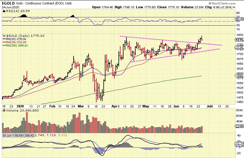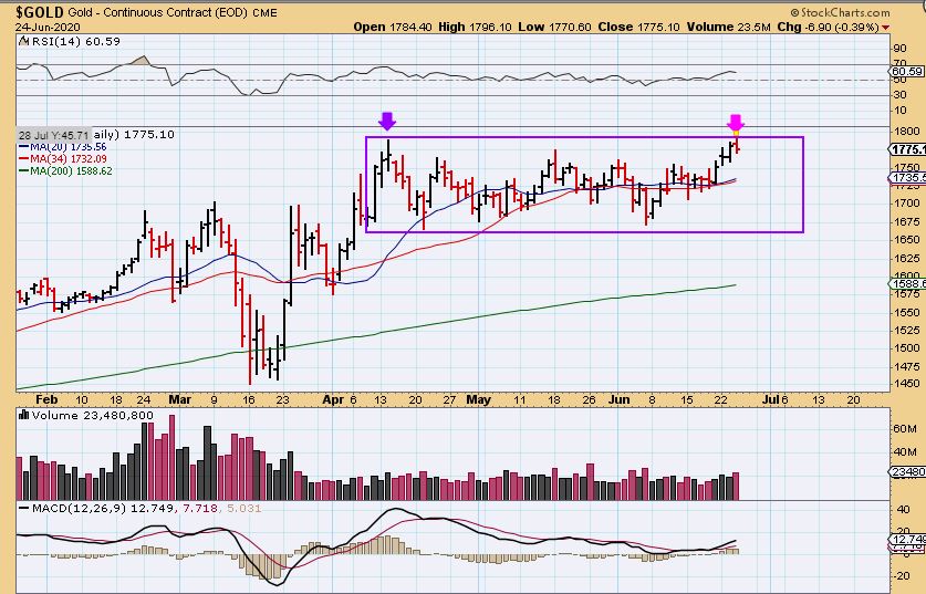 GOLD WEDNESDAY:  Gold popped and reversed, and now this consolidation box still looks valid.