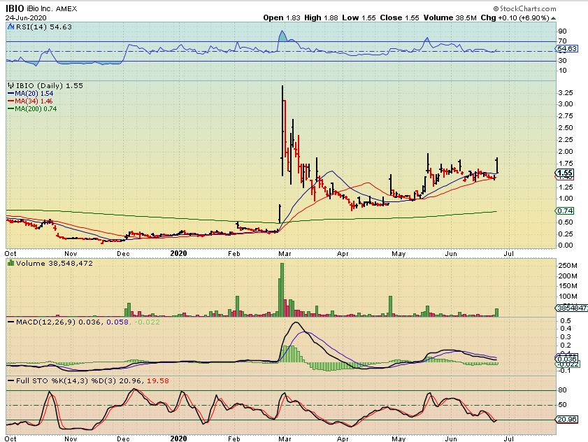 IBIO #2 – It closed on the 20sma, and this is a great one for the watch list. If it reverses and starts moving higher, that is a buy with a tight stop.  Notice that IBIO  HAS popped and consolidated in the past, so this may just move sideways, but with the whole sector gaining attention, it is worth watching.