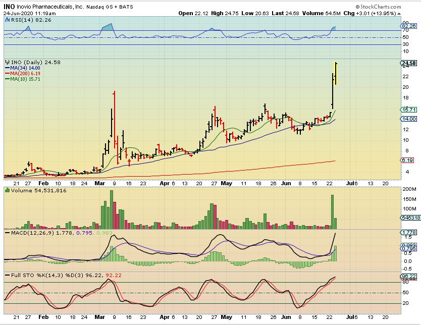 I also mentioned VXRT in the morning as it started to move, and IT was up 20% too, so these are running. What about others that may be ready to go?  Yes…