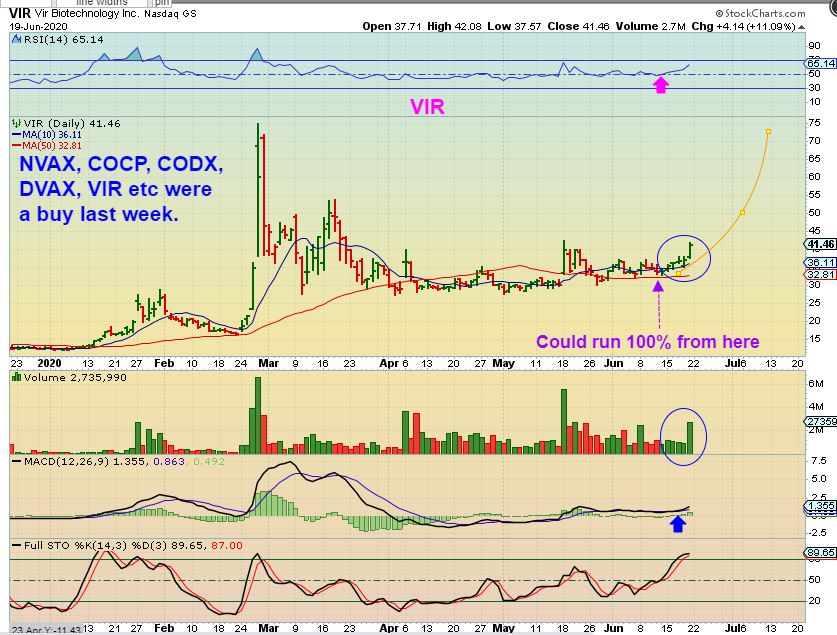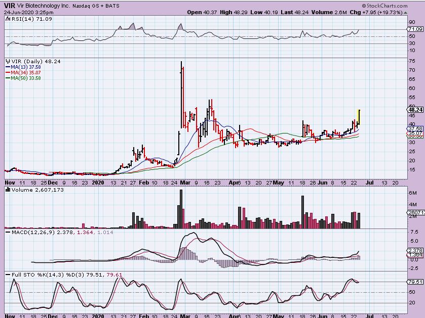I posted VIR last week at $41, as it bounced off of the 50sma repeatedly. I listed other bullish set ups too …