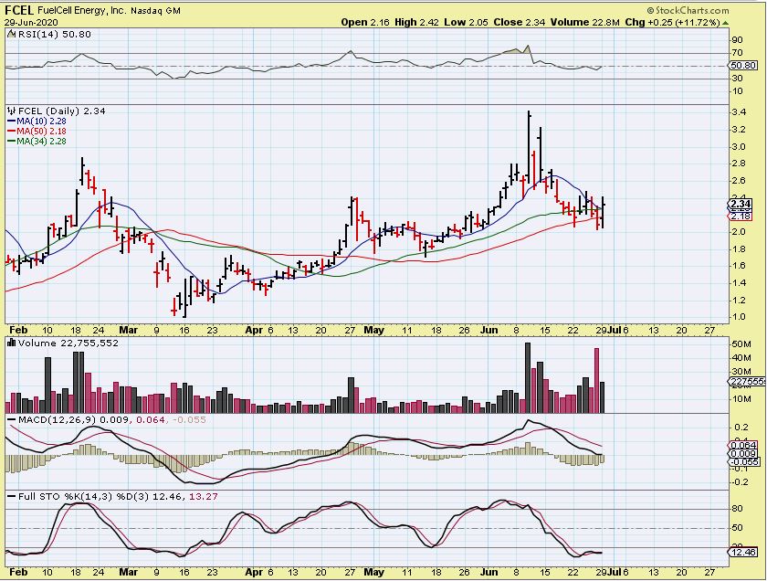 FCEL – did the same . It closed under the 50 sma and then flipped higher Monday.