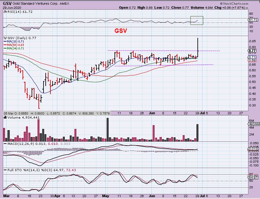 GSV looked similar to BTG, AUY, IAG, etc , with a long sideways consolidation, but it broke out. It then sold off, but it is still bullish.  This gives us a lower entry all over again. If it ran up and pulled back, can it get follow through Tuesday or Wednesday?…