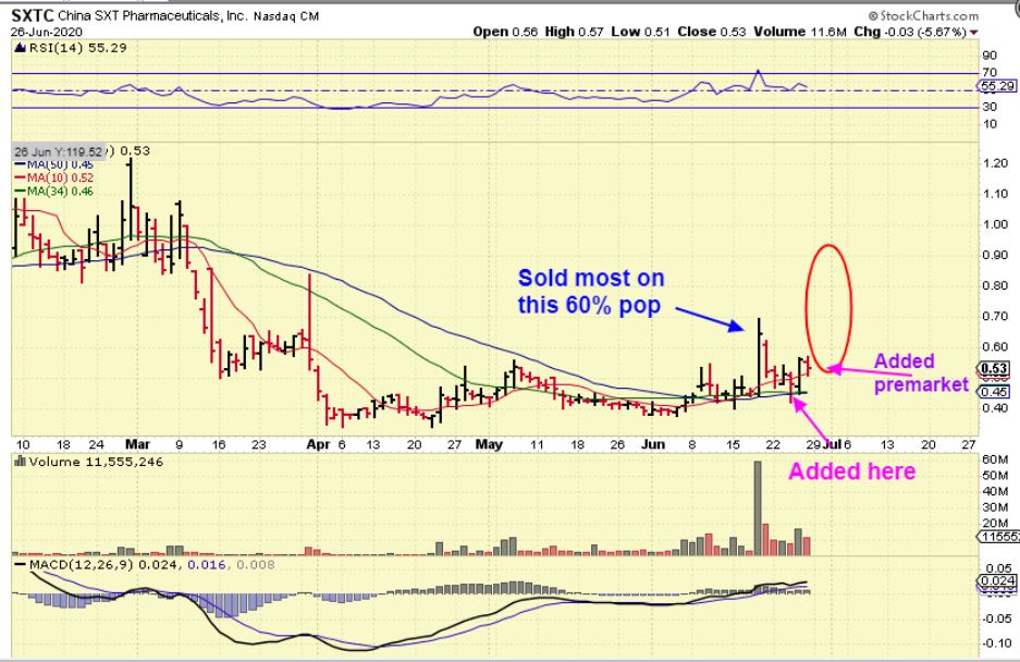 SXTC – I mentioned that I rebought SXTC, and I was looking for a pop and run again…