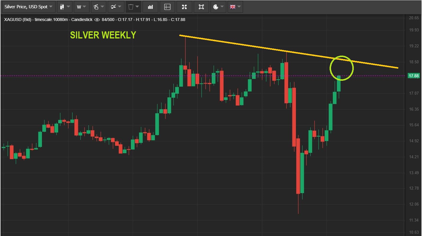 SILVER WEEKLY LAST WEEK   – This would give us more upside to the trend line