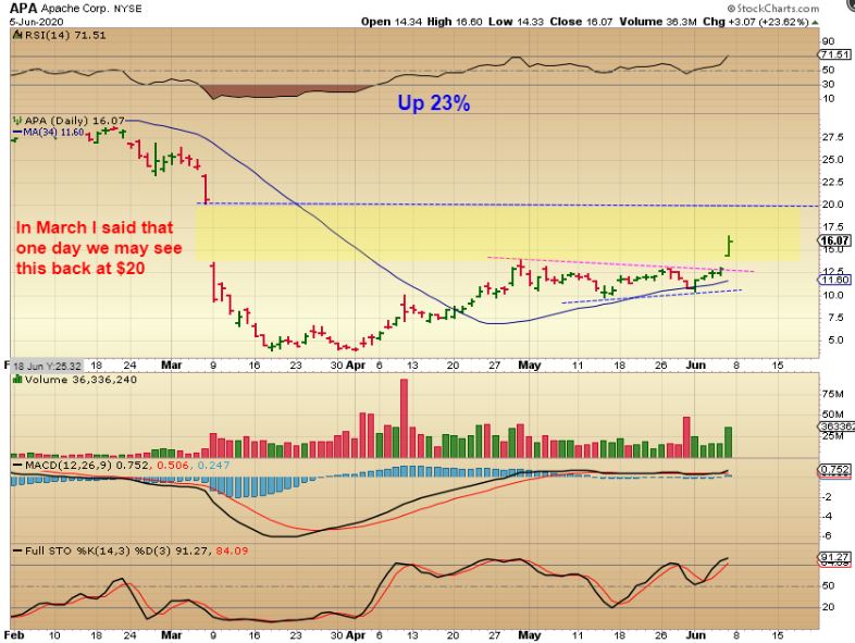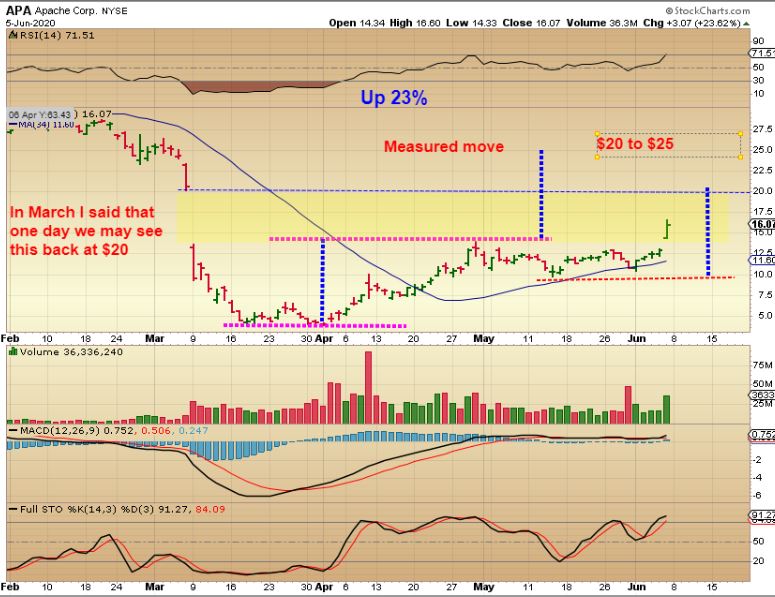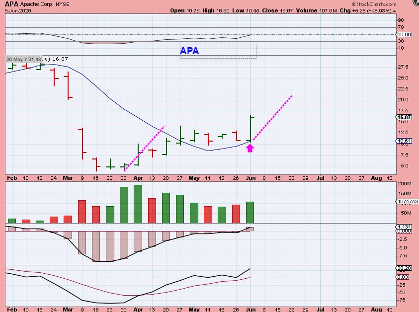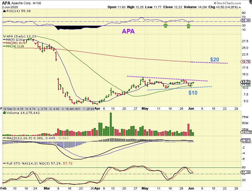 APA WEEKLY –  That was a great 48% Pop in a $10 stock this week alone, congrats if you got it. NOW you must manage it to keep the gains, but maybe even get more.