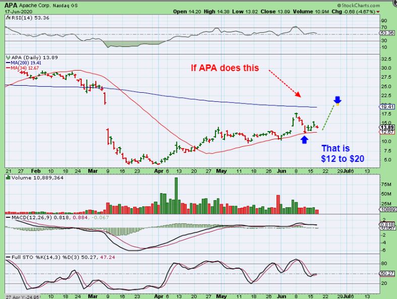 So our Energy Stocks like APA have popped and made a run , but are now back at the 10sma. I have had these in the reports as a place to enter ( low risk entries).  I do not own these, but I do like them as a bullish set up with good potential upside.