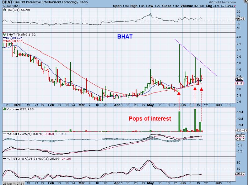 BHAT is very choppy, but these are big moves from the 0 sma (&34sma), which are acting as support. These pops have been from that 10sma ( $1.20) to $2 and it may eventually break out from the purple line, because…