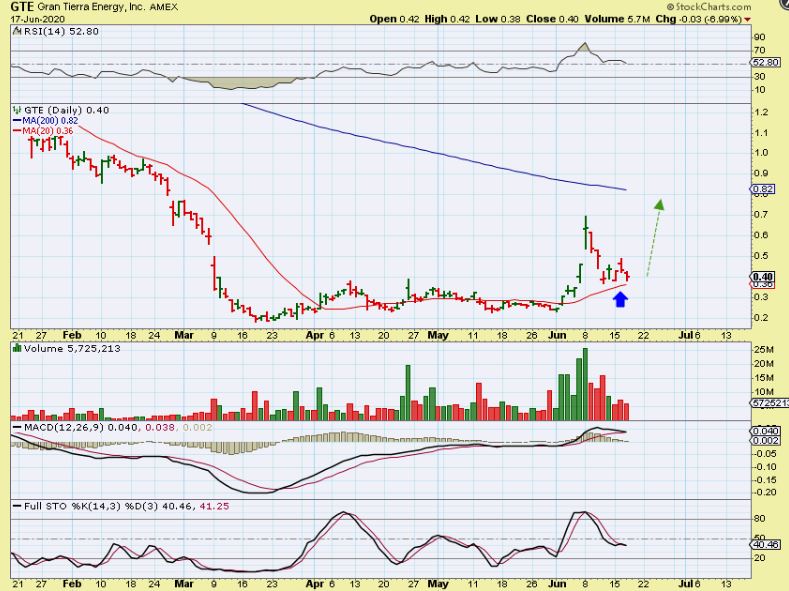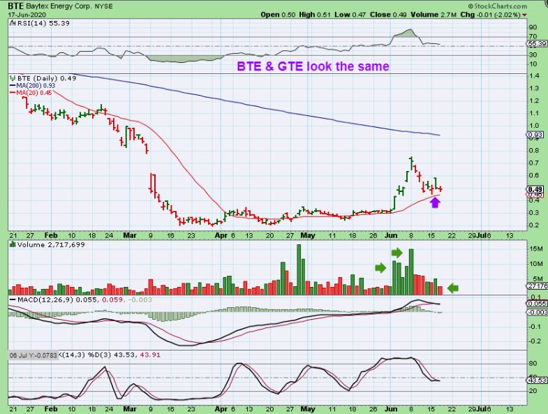 GTE  looks just like BTE, looking at a support area,  however GTE popped up 40% after hrs.