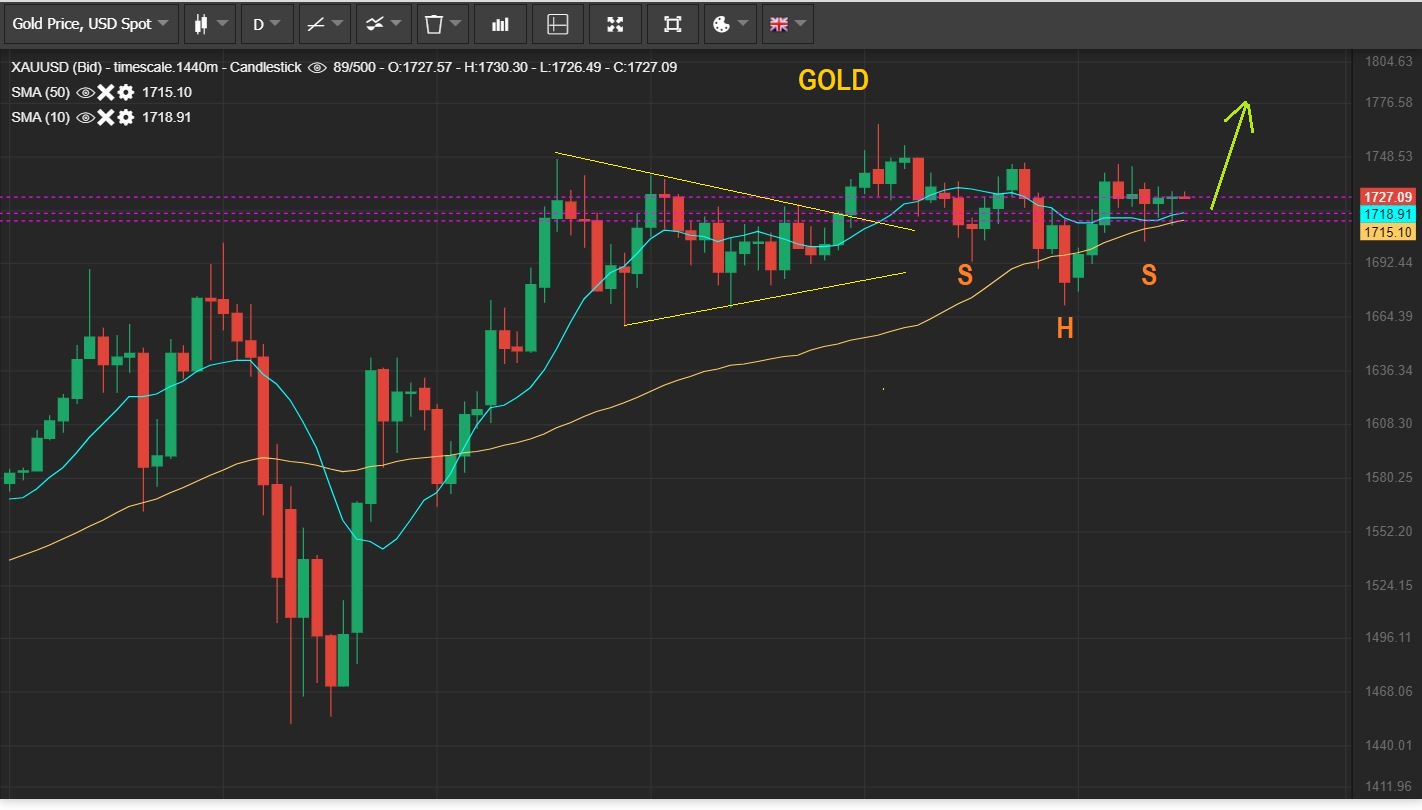 GOLD – Another day of sideways chop, but this can lead to a bullish pop.  I still see a possible inverse H&S.
