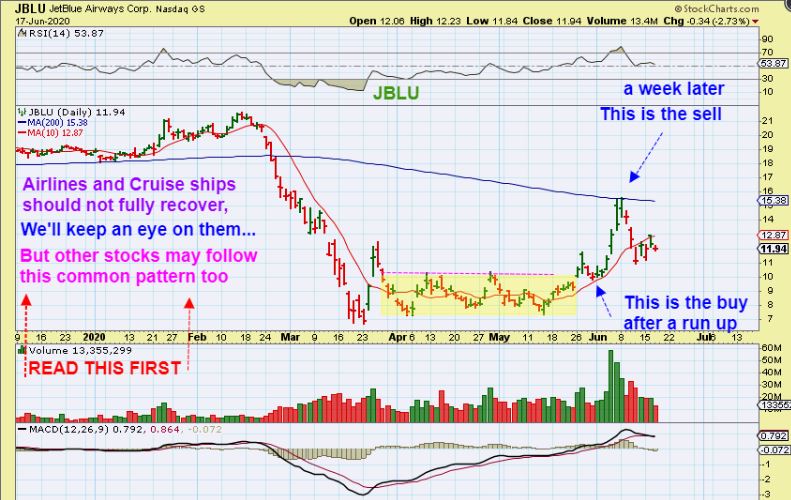 Look at JBLU and see how after the pop from the base, it  then back tested the 10sma ( a buy) and ran to the 200sma.  That was $10 to $15.  Next…