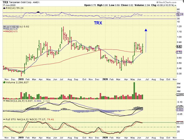 TRX – I used these 2 charts below recently to show that some of the juniors, like TRX, looked bullish, and i mentioned that I bought TRX Monday and Tuesday.