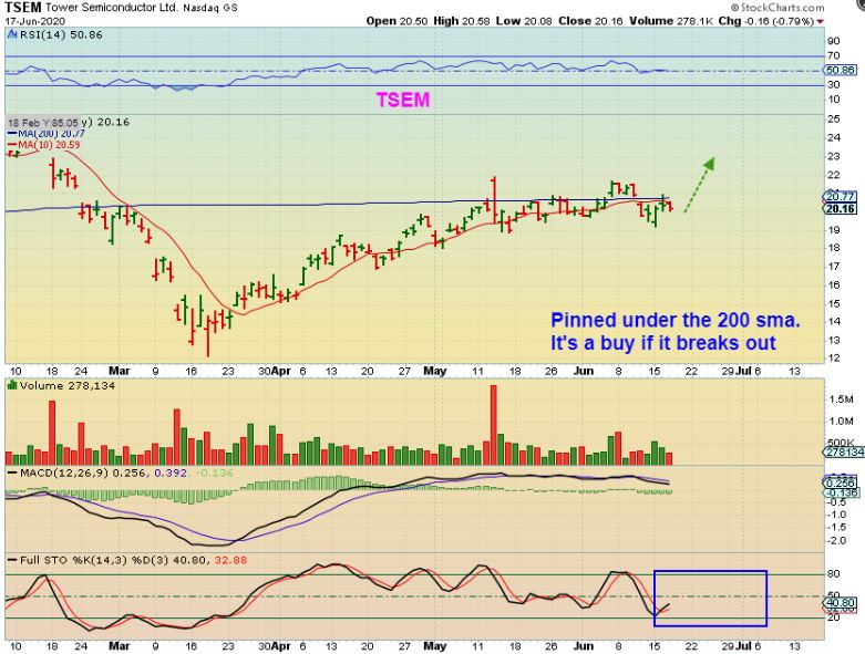 TSEM – Our General Markets trades are still set up bullishly, and may be ready for a break higher. We discussed AMD, MU, etc.