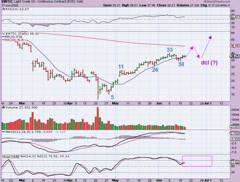 WTIC  – Oil can have 50 plus day daily cycles, so there is still time for this to pop, tag the 200 sma, and then quickly drop to a dcl.  That isn’t a guarantee obviously, it is just likely based on the current set up.