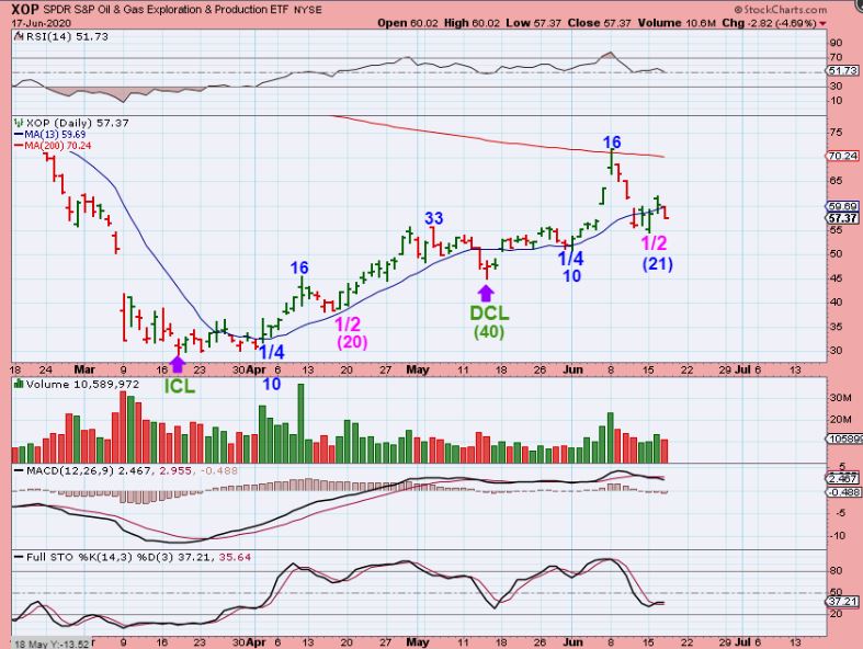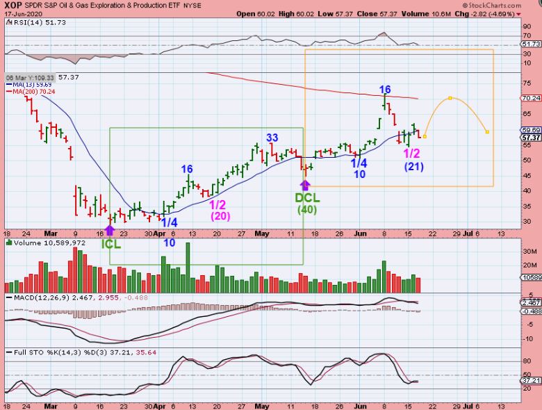 XOP #1 – This lost the 13 sma and that can be a sign of weakness.  I drew the first daily cycle & compared it to this 2nd one. They are almost identical, but we need price to rise sooner than later.  So…