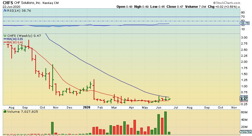 CHFS – Yes, I still own this squeeze play in CHFS and if this breaks this week, it could Pop higher as a big %-Gainer. For now it is pressed under 50 cents.