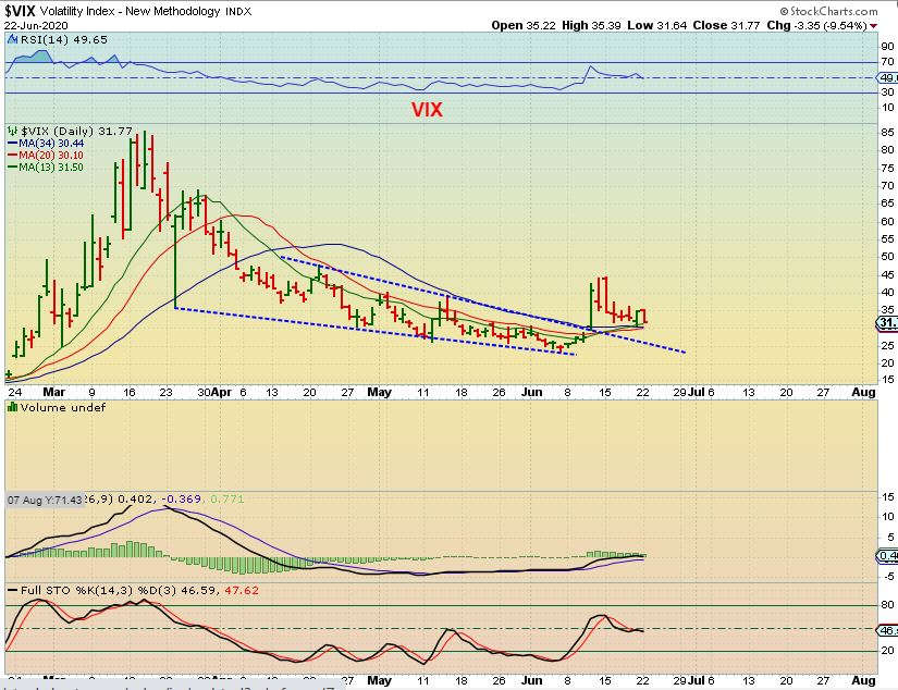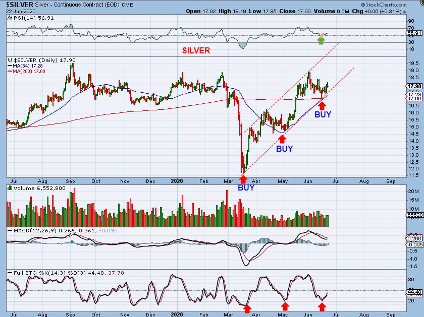 LAST WEEK : SILVER JUNE 15 – Silver was announced as a low risk buy with this reversal on day 38. A stop would then be put under that low ( Buy Silver stocks or AGQ & USLV are leveraged etfs that could be bought too)