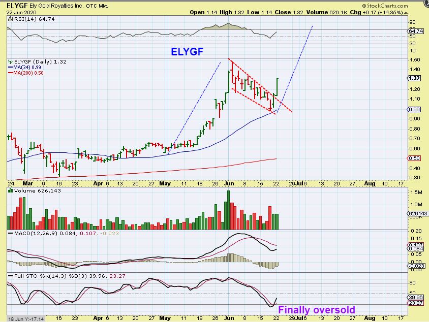 ELYGF broke a downtrend line Friday and remains oversold, so this has room to run too. I bought ELYGF after Fridays pop and I added to ELYGF right at near $1.30. I had to add at a higher price here, but if it runs to $2.00 over the next 2 weeks, I’ll be just fine with buying near $1.30.