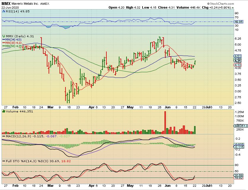 MMX – This was mentioned by JT ( Thx) – This is a nice chart. It is a buy. It trades on light volume on occasion, but the Volume yesterday was solid.