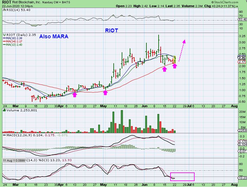RIOT & MARA both reversed off of their 34 sma and this is was a buy, especially the way these can move. They did extend higher after I posted this , so if they pull back Tuesday it may offer a better entry.