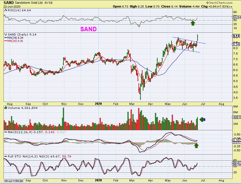 SAND did break out to new highs, so we’ll see if this does what DRD did. It looks very good with strong volume. That first run was strong from $3.50 to $9! This can run into the teens.