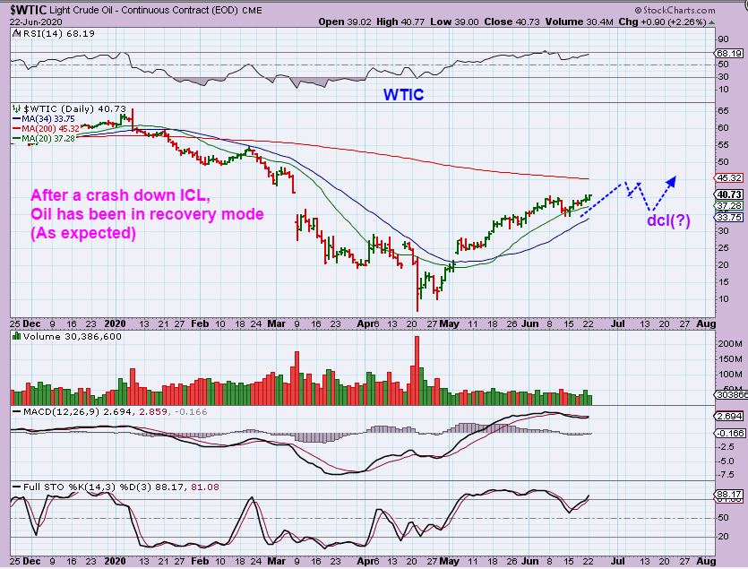 XOP – So far we do see that happening. Energy Stocks popped sharply higher during their 2nd daily cycle, hitting Resistance at the 200 sma. The XOP then dropped from there back to the 34 sma and has been a bit sluggish lately, bouncing there. I would think that this can make a run to the 200sma again, as Oil climbs higher. It has now reached oversold.