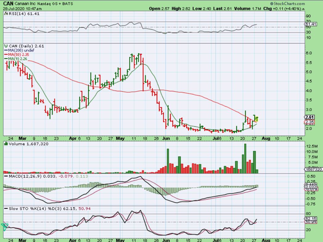 CAN  – This was mentioned in our live area as a blockchain possibility, and I like the volume around these lows as it tries to push higher.  It looks to be forming a round bottom base.