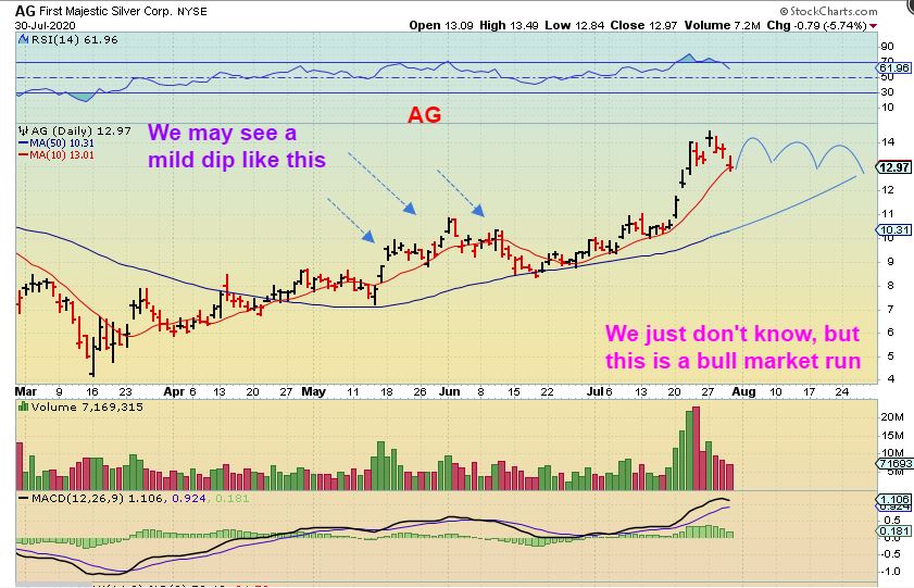 If you own a core position or sold partials and will let a stop take you out of the trade as recommended, you may still own many of these Miners that held the 10sma so far like KL shown above or AG shown here. There are several others too.