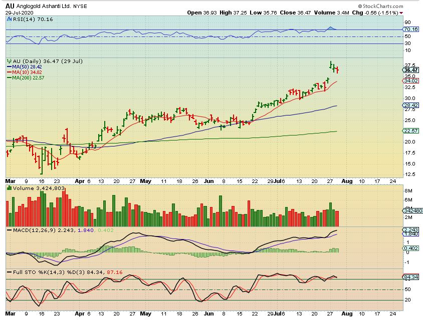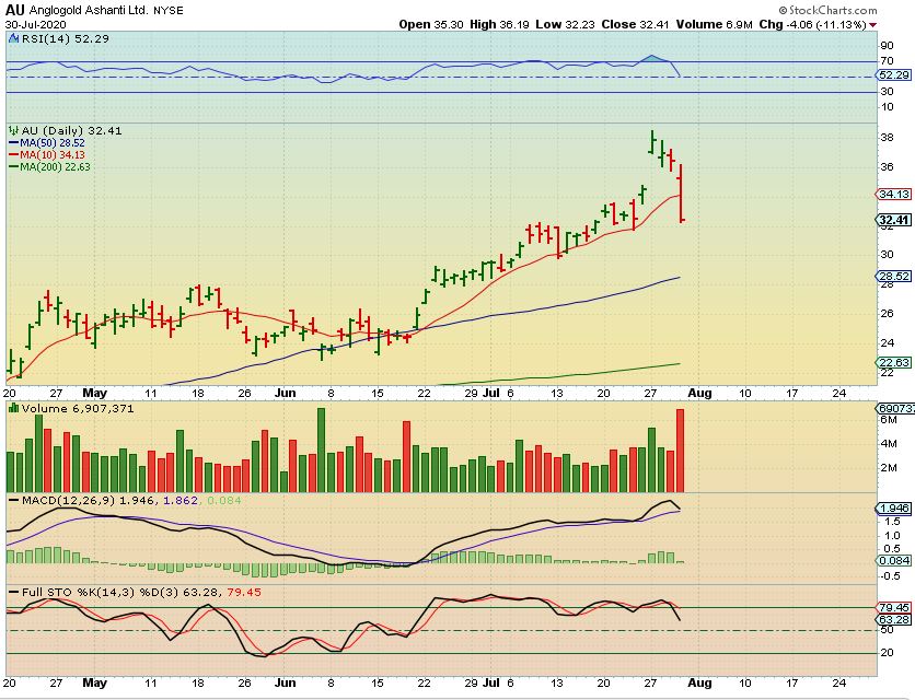 AU – Whoa! This just shows us how quickly things can change. If you bought this 2 or even 3 weeks ago, you are now break even, so things can change fast hen a dip comes due. We want to stay alert and see how the sector plays out .