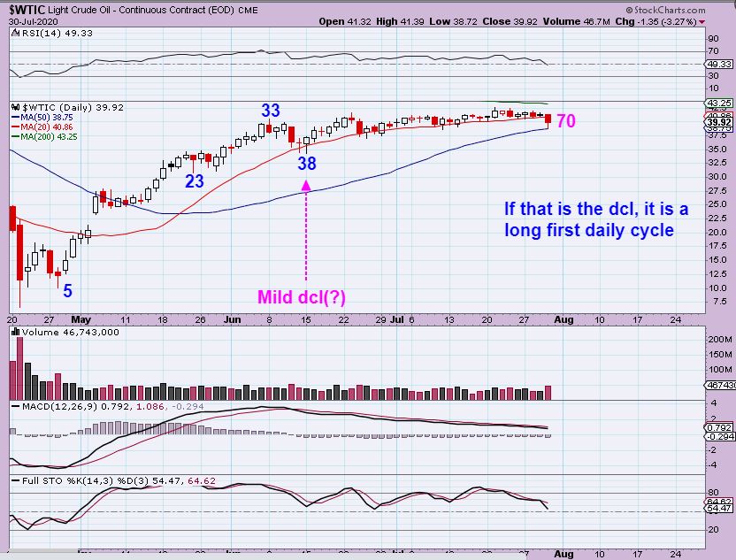 WTIC – Oil also bounced off of the 50sma. Cycle counts are tricky here. Oil daily cycles often go 50+ days, but did we have a milder day 38? Or is this a long day 70? It is hard to know , but let me remind you of something if you have been with me for at least 2 months…